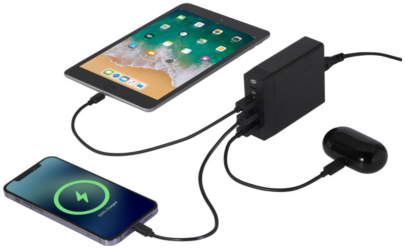 ADAPT PD -latausasema on erittäin nopea ratkaisu vastuullisempaan ja tehokkaampaan latauskokemukseen. Kierrätetystä muovista valmistetussa latausasemassa yhdistyvät kestävyys ja toimivuus sekä tyylikäs muotoilu. Mukana toimitetaan sekä EU- että UK-virtajohdot, joilla varmistetaan yhteensopivuus eri pistorasioiden kanssa (AC 100-240V 50/60Hz). Latausasemassa on 3 USB-A-porttia ja 1 USB-C-portti ja sillä saa ladattua monta laitetta samanaikaisesti ja nopeasti. USB-C-portti tukee useita lähtöjännitteitä, kuten 5 V / 3 A, 9 V / 3 A, 12 V / 3 A, 15 V / 3 A ja 20 V / 3 A, ja maksimiteho on 60 W. USB-A-porttien tasainen lähtöteho on 5 V / 2,4 A (enintään 12 W). Type-C:n ja USB-A:n yhdistelmä voi tarjota enintään 72 W:n tehon. Toimitetaan korkealaatuisessa voimapaperipakkauksessa. PCR-muovi.